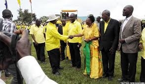 Residents of Kiwoko welcome President Museveni in Nakaseke District.